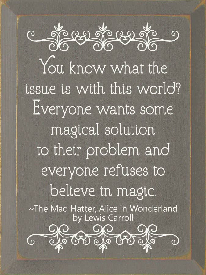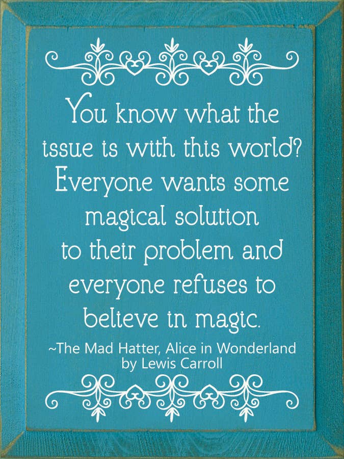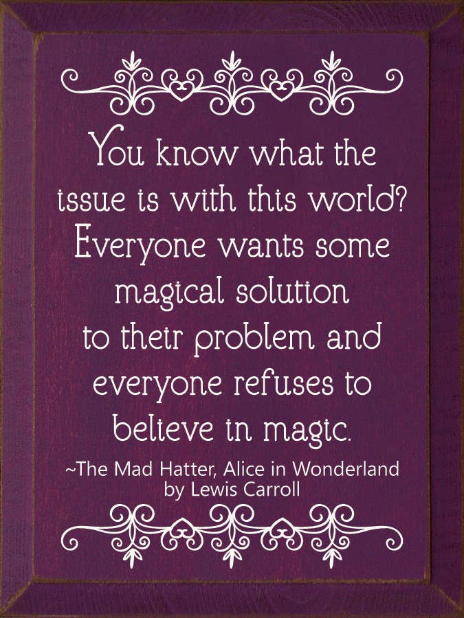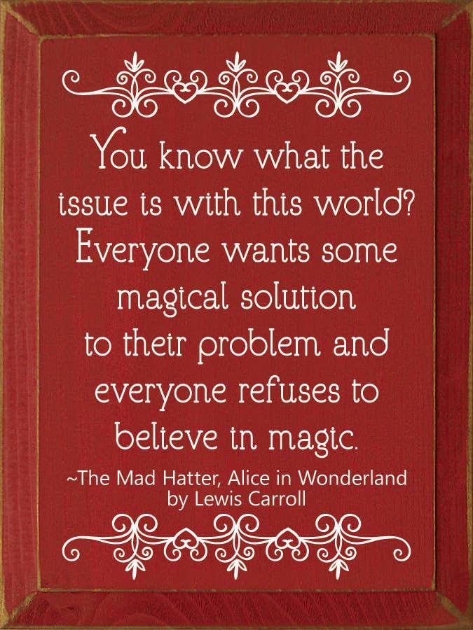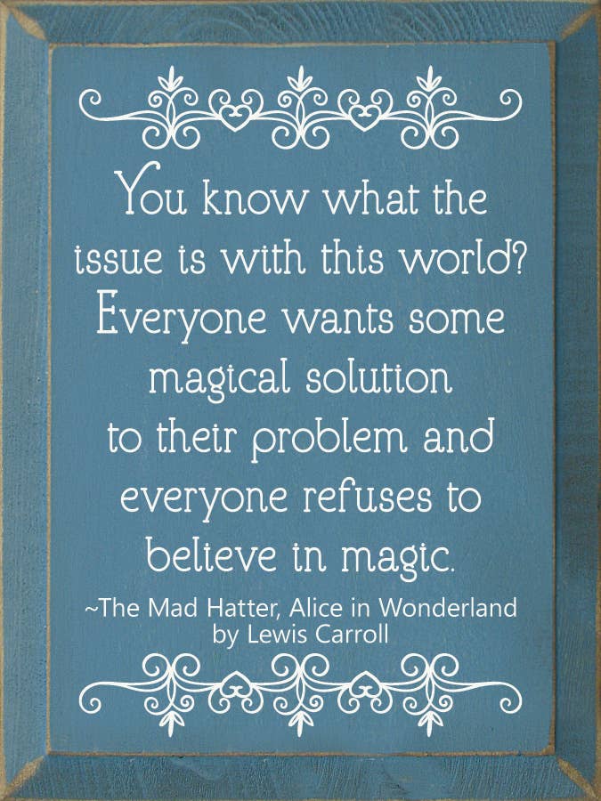 You know what the issue is with this world? Everyone wants so magical solution to their problem, and everyone refuses to believe in magic. - The Mad Hatter, Alice in Wonderland by Lewis Carroll Our pieces are made from solid knotty pine, so please allow for slight imperfections - as wood is imperfect by its nature - but only adds to the character of the product. It is intended to have a rustic, old look and feel. Expect knots, variance in color, and natural cracks - as well as small edge “dents” or chips.